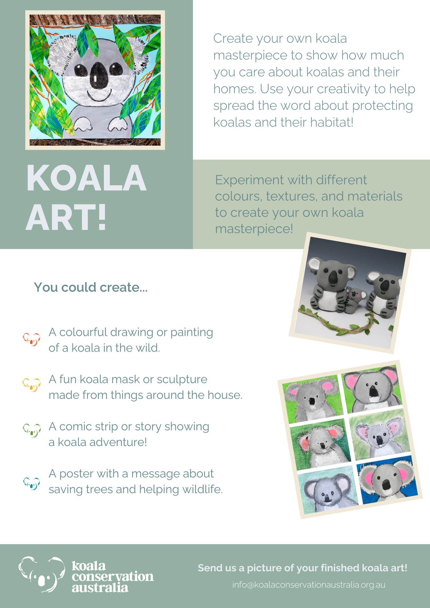 Bring our furry friends to life! Create your own koala-inspired artwork – draw, paint, collage or craft. Use your imagination and have fun!
