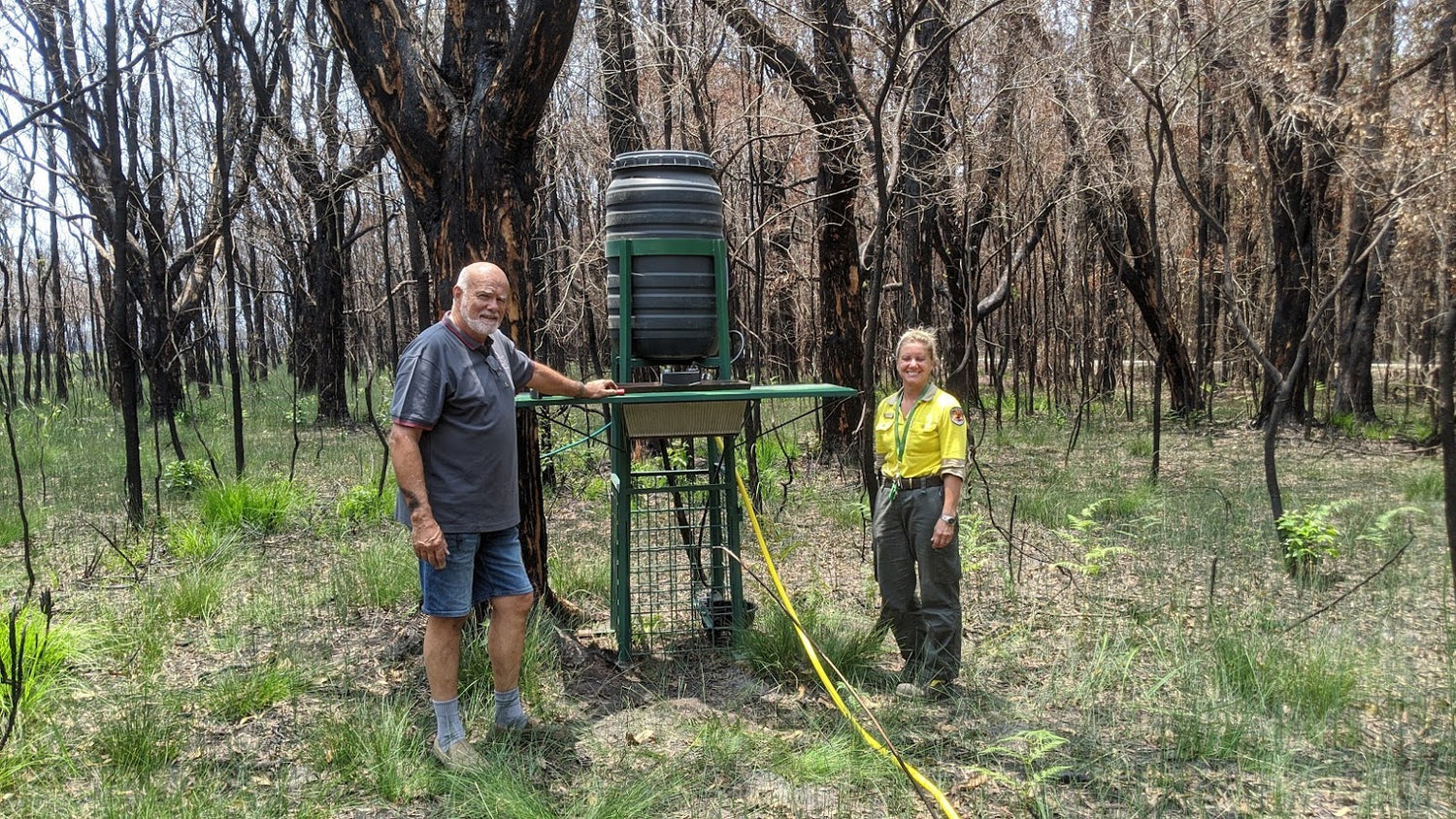 We knew we needed to supply water to wildlife in local areas in need, so we investigated a water dispensing system designed by industrious Northern NSW engineer Greg Buck. We called them Wildlife Drinking Stations (WDS).